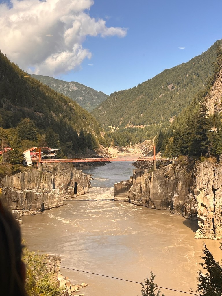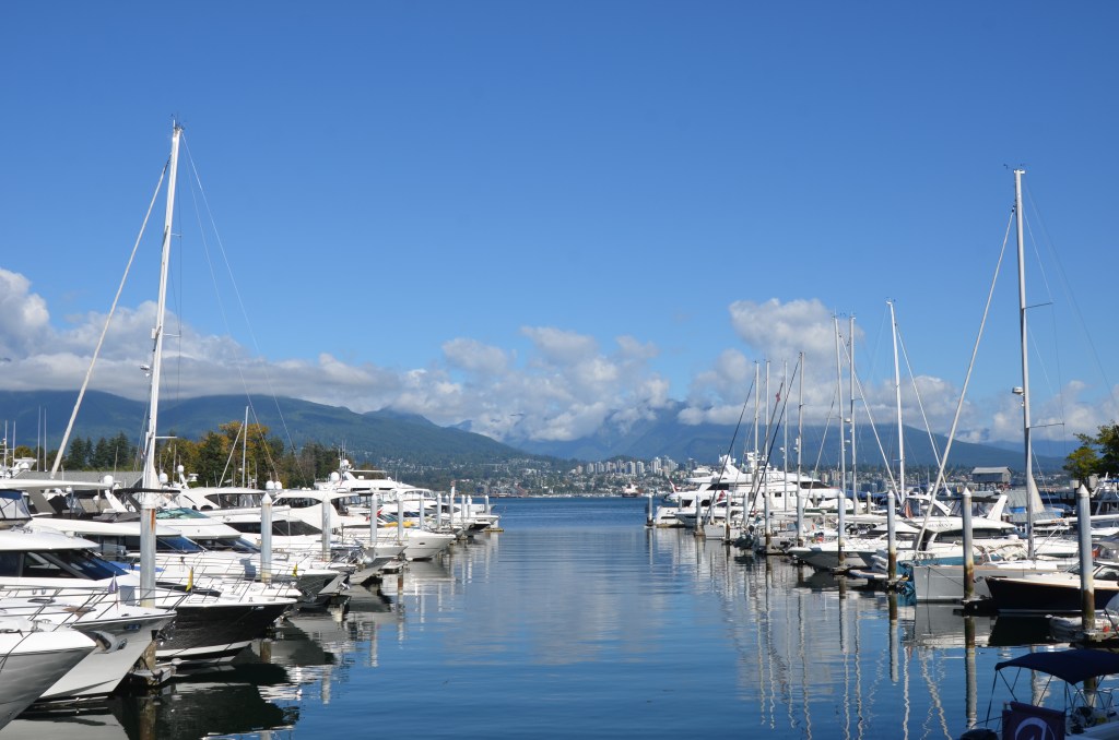 We got up fairly early, and after collecting our delayed luggage from the concierge, were soon out again in the lovely September sunshine for breakfast. As we were close to Café Villagio, the first place we ate on our very first day in Vancouver, we decided this would be a good place for our last breakfast in Canada, and it’s a great café. Fortunately, we were able to sit outside and enjoy our last few hours of Canadian air by the water. Taking in the incredible views of where the Pacific Ocean meets the mountains.